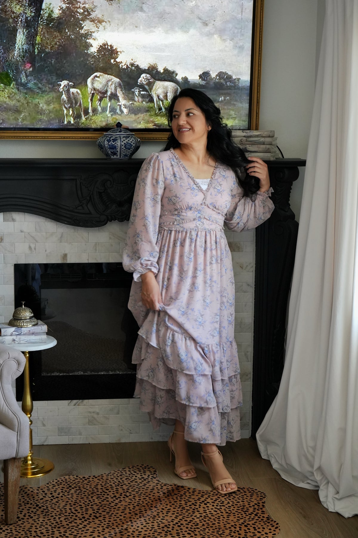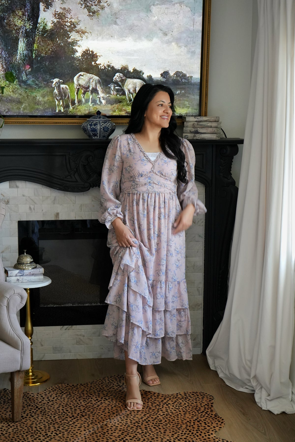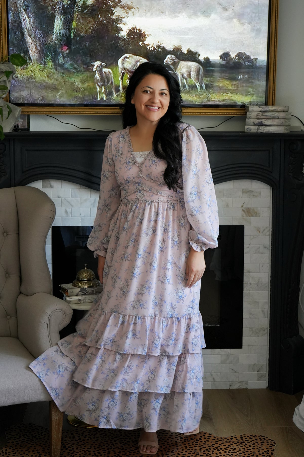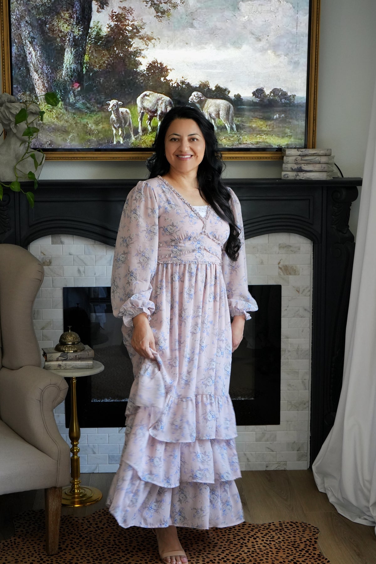 The perfect dusty pink with light blue and white florals