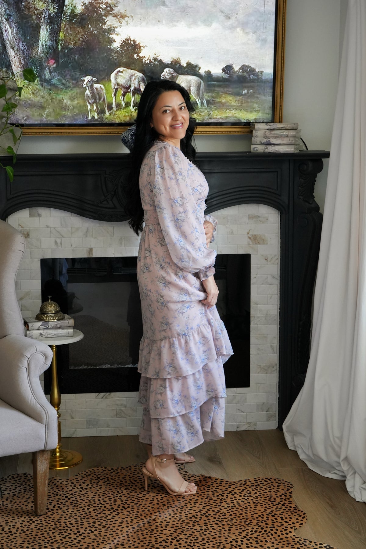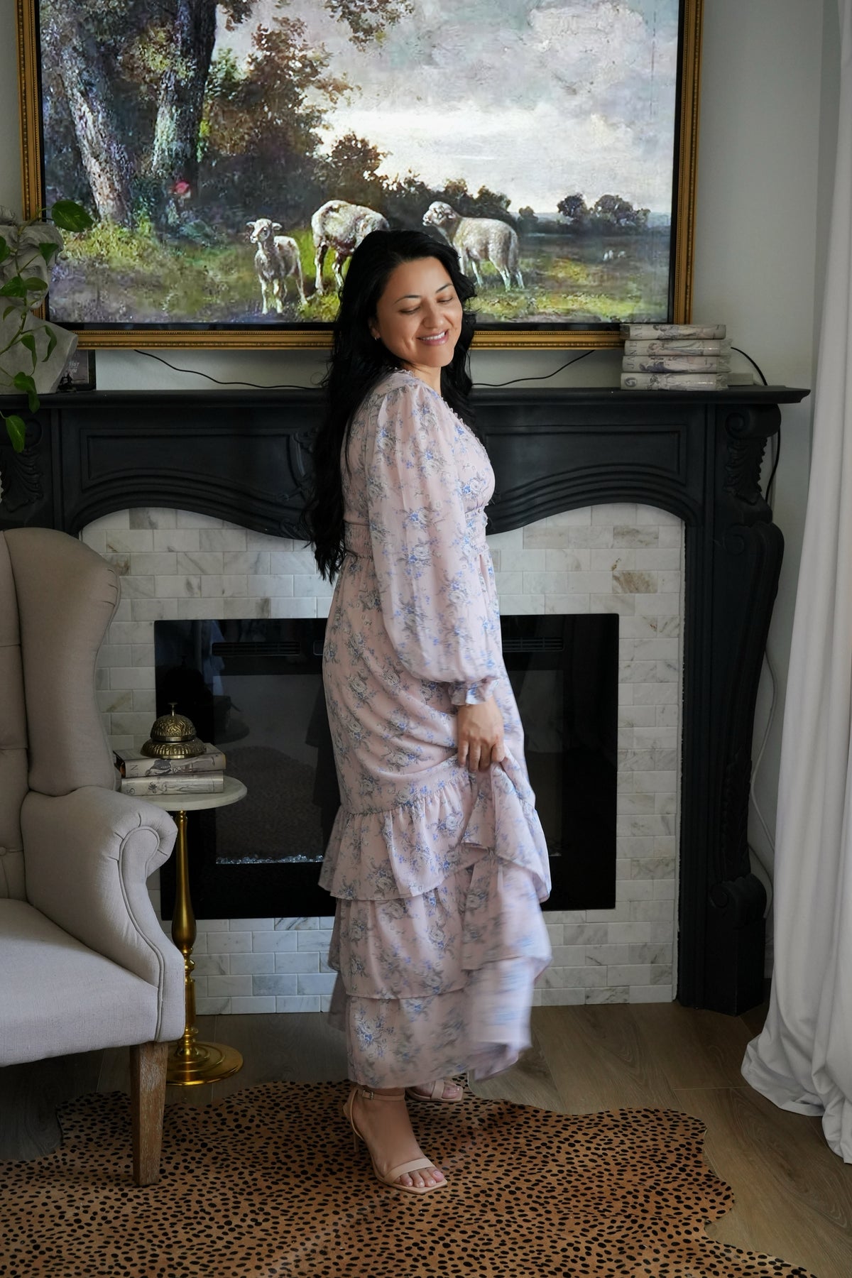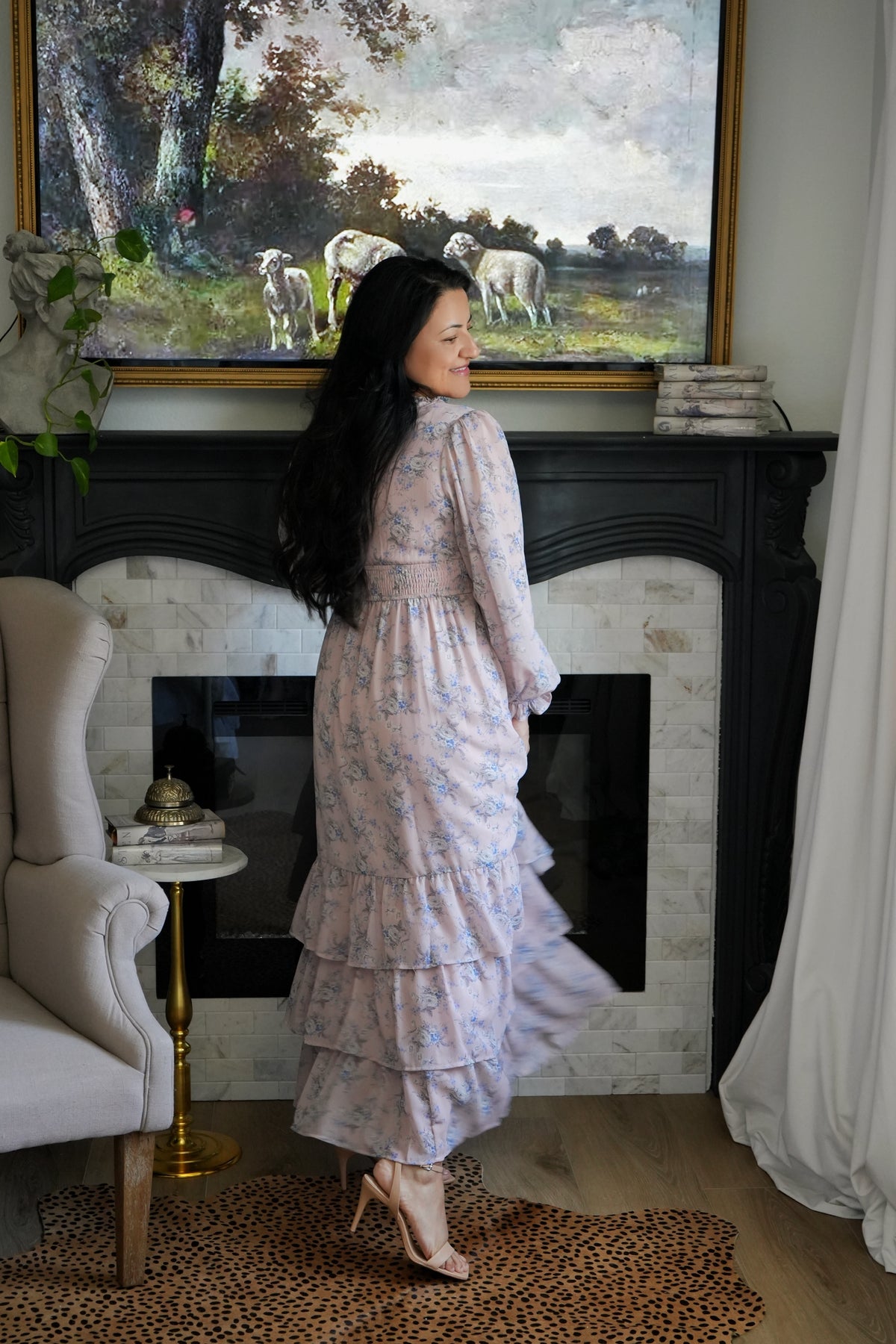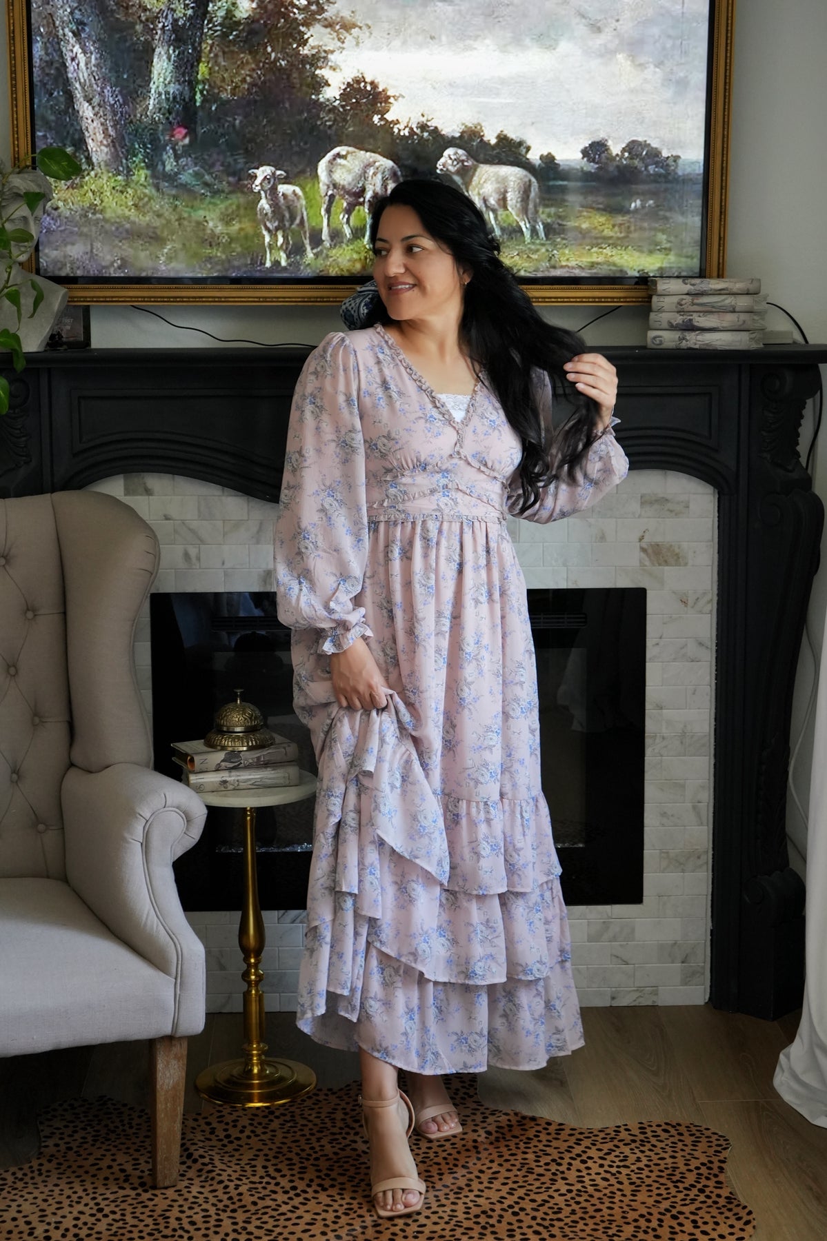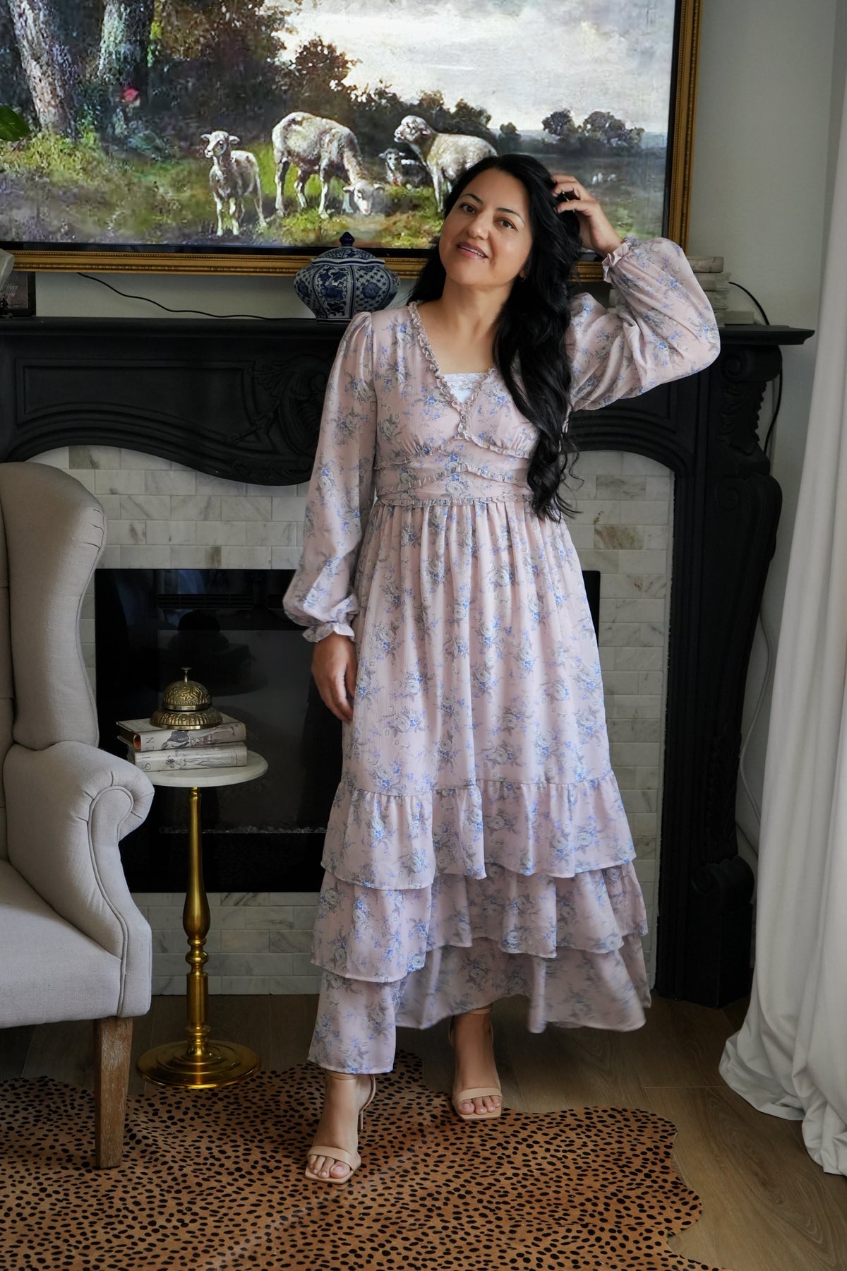 The perfect dusty pink with light blue and white florals