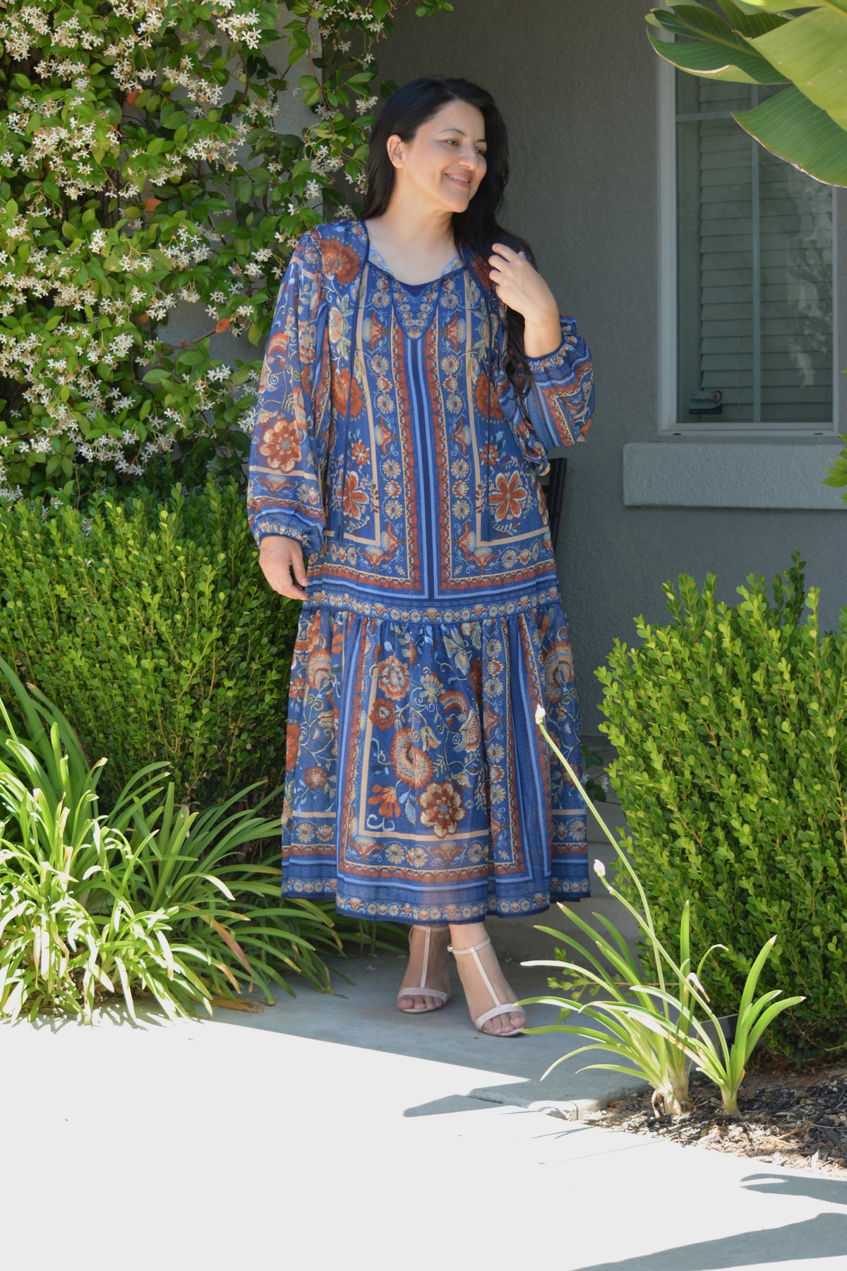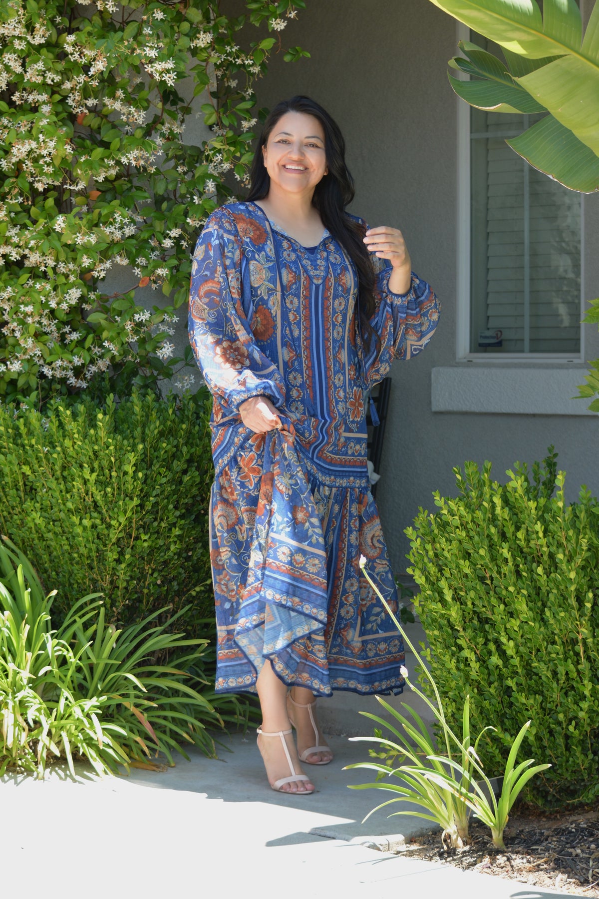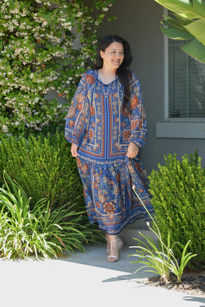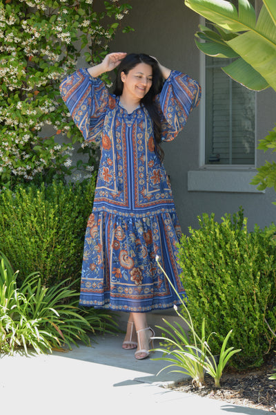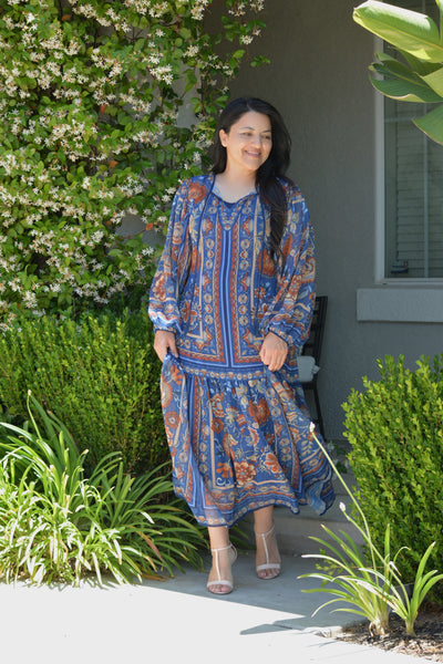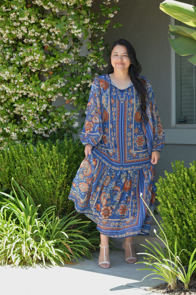 Hope Woven Navy Midi Dress
